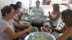 Funcionários e Assistidos na Preparação Jantar da Família "ESTREITANDO OS LAÇOS" no Instituto de Cegos do Brasil Central - 29 de agosto.